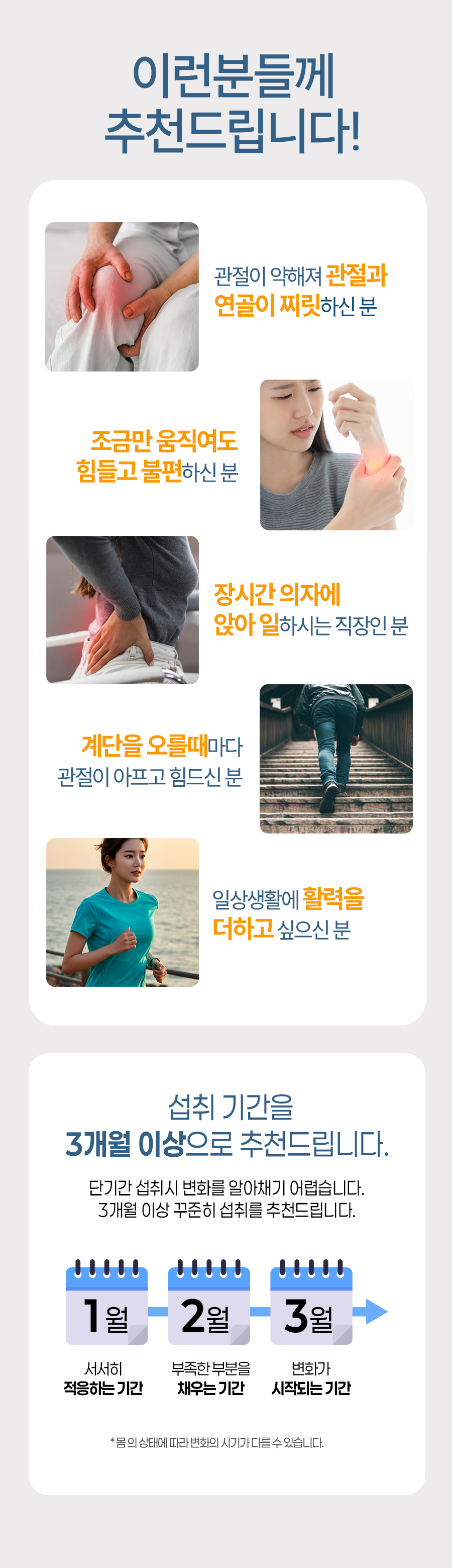 상어연골에 MBP까지 함유된 프리미엄 관절 영양제예요. 무릎이 안 좋으신 어머니께 선물드렸는데, 계단 오르내리기가 한결 편해지셨다고 하세요. 가격 대비 성분이 알차서 재구매 예정입니다.