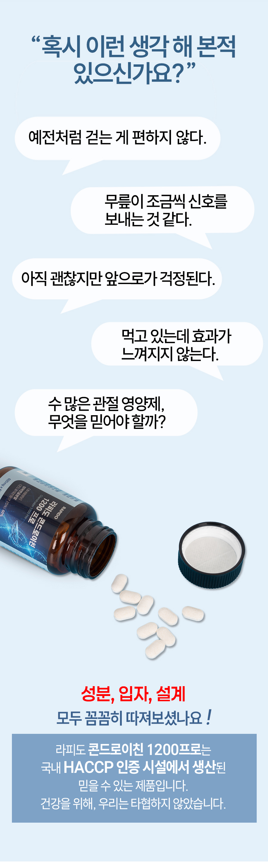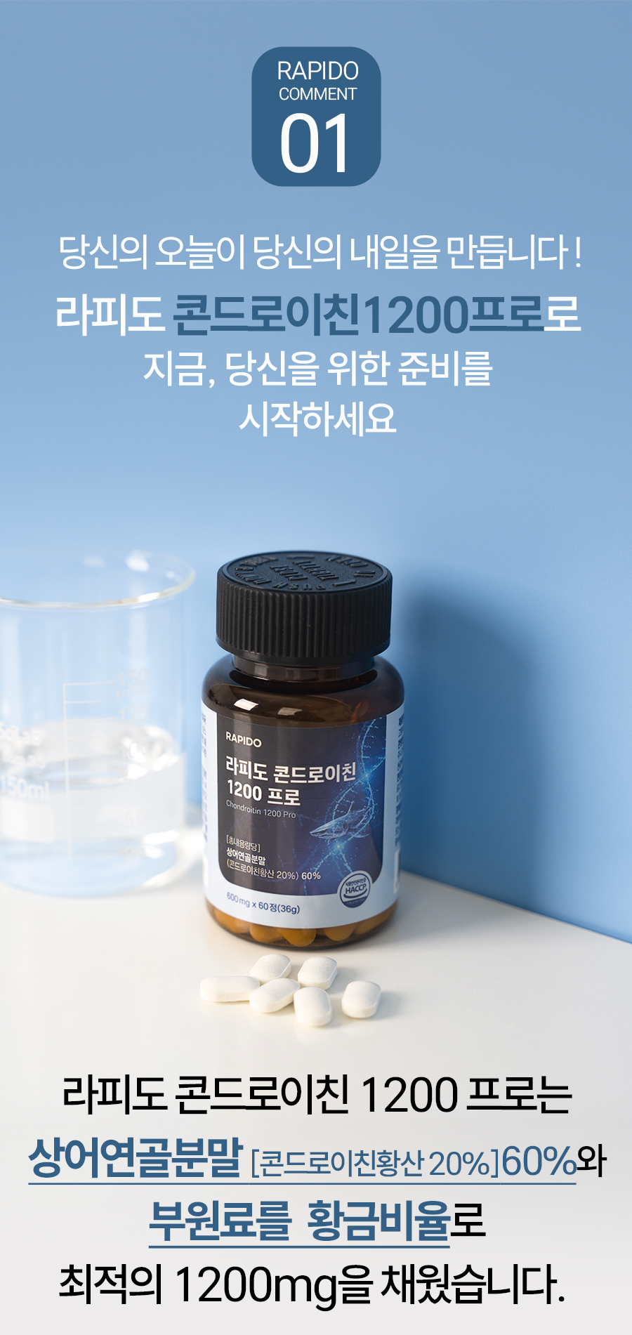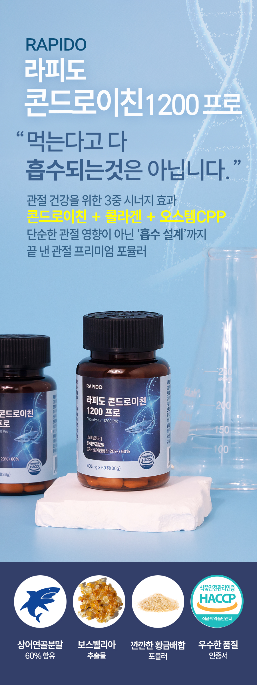 [프리미엄] 라피도 콘드로이친 1200 프로 골드 MBP 함유 상어연골 무릎 관절 연골 건강 보호 영양제