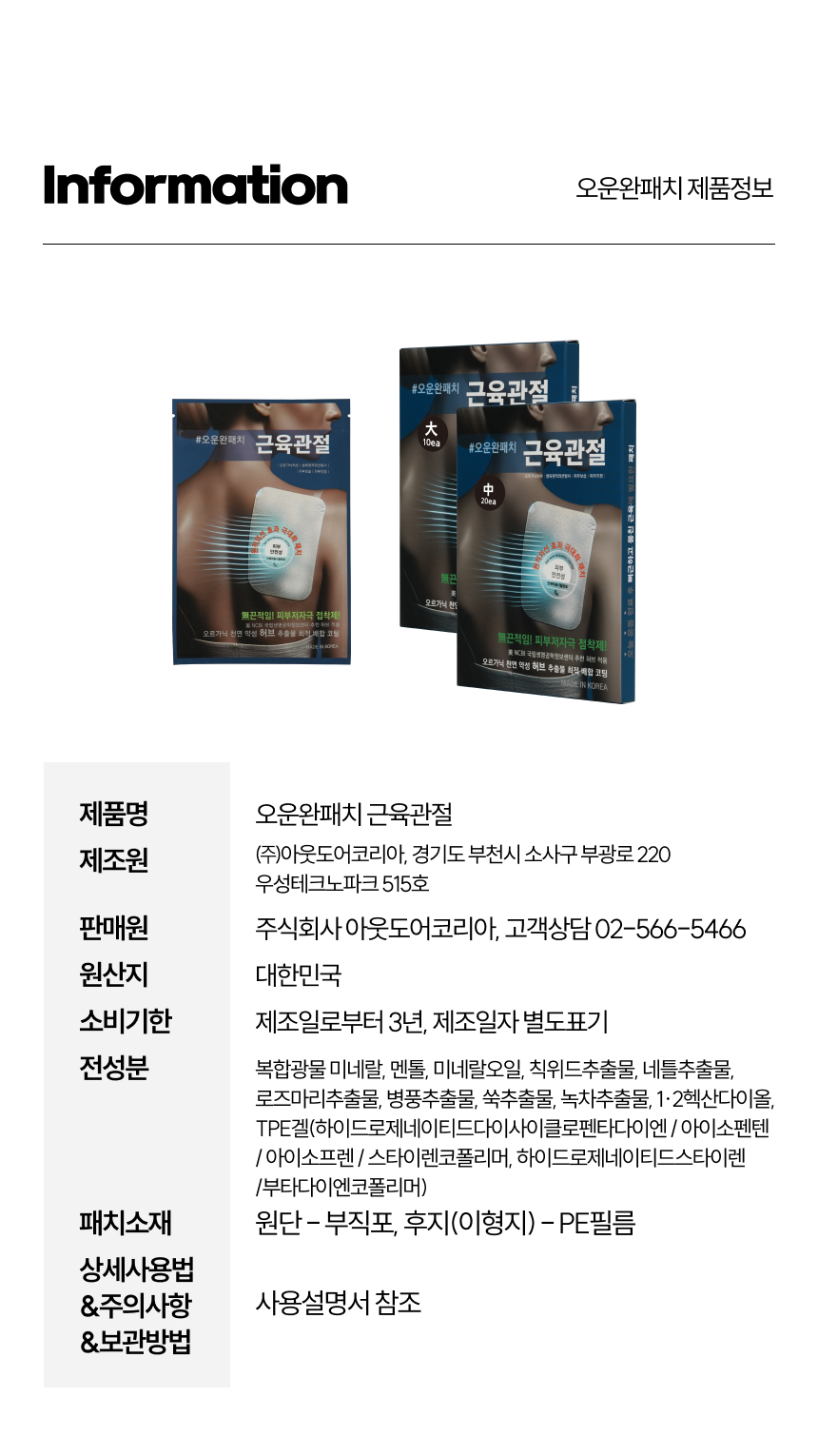 오운완패치 근육관절패치 근육통 붙이는 파스 중대형(2026년 신형으로 배송합니다)