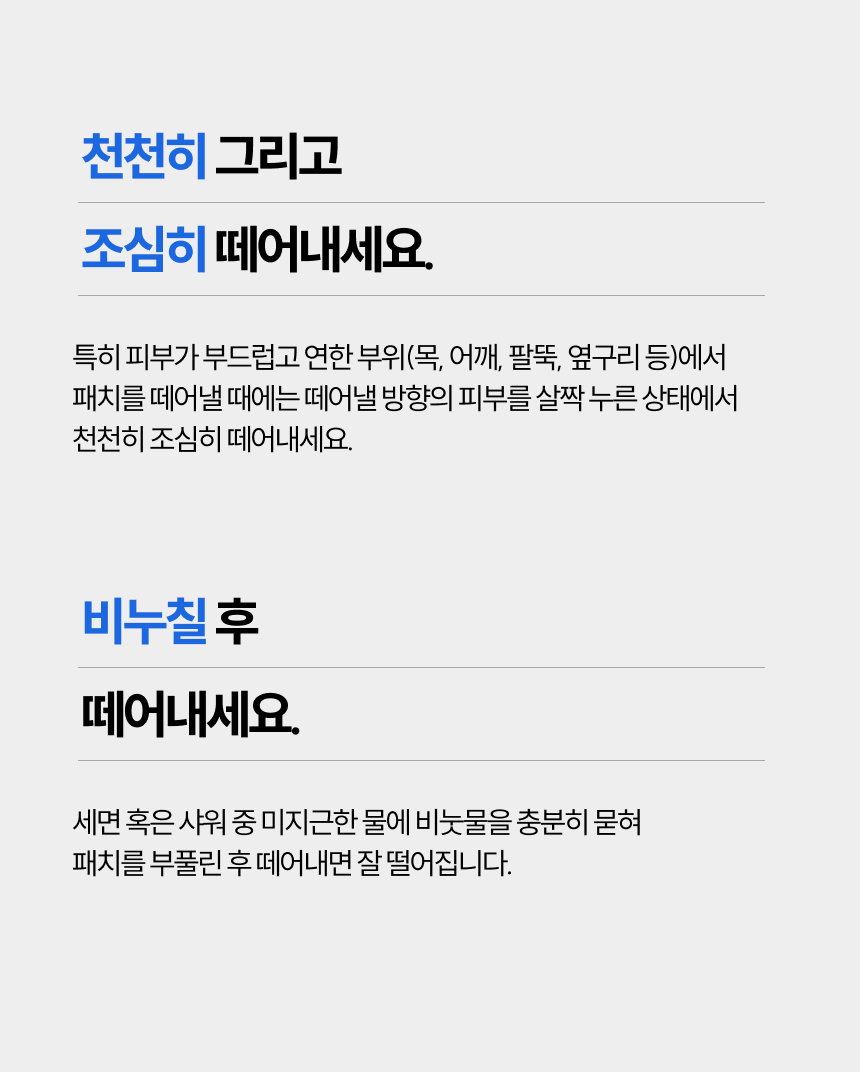 운동 후에 근육통이 올 때 붙이면 확실히 풀리는 느낌이에요. 중대형 사이즈라 어깨나 허벅지 같은 넓은 부위에도 잘 맞습니다. 접착력도 좋아서 하루 종일 붙어있어요.
