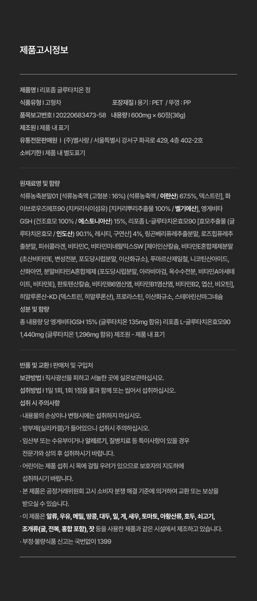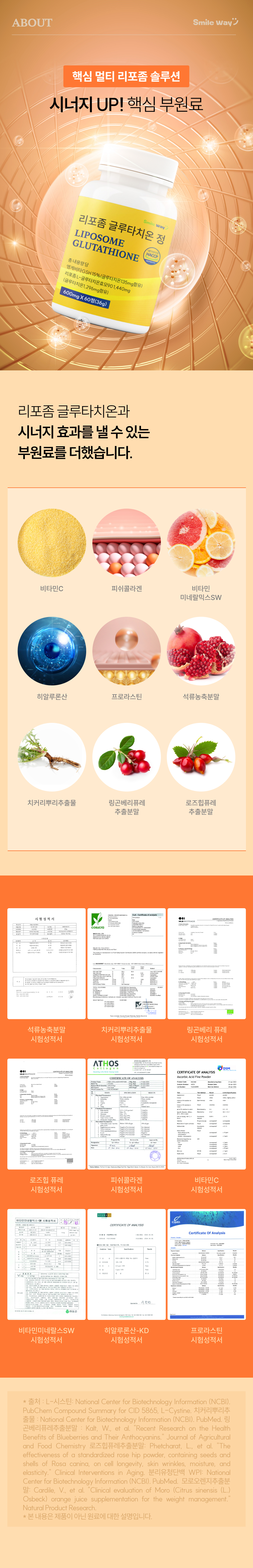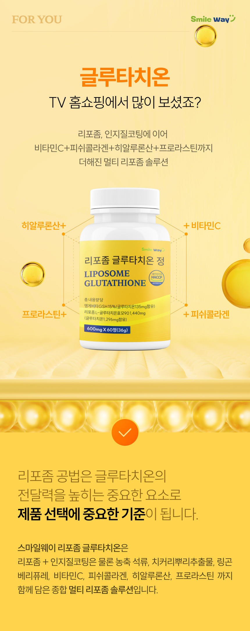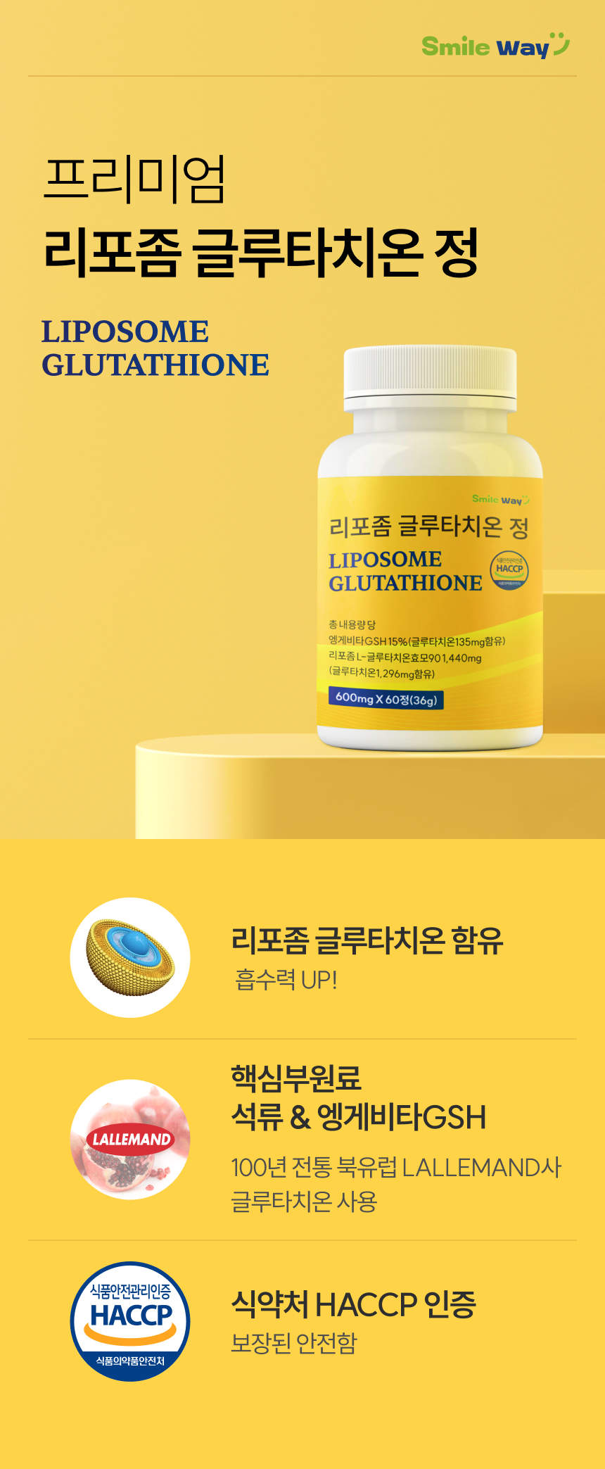 스마일웨이 리포좀 글루타치온 600mg 고함량 식약처인증 HACCP 멀티 비타민C